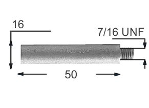 ZINC CUMMINS Engine Anode Only D16x50-7/16UNF