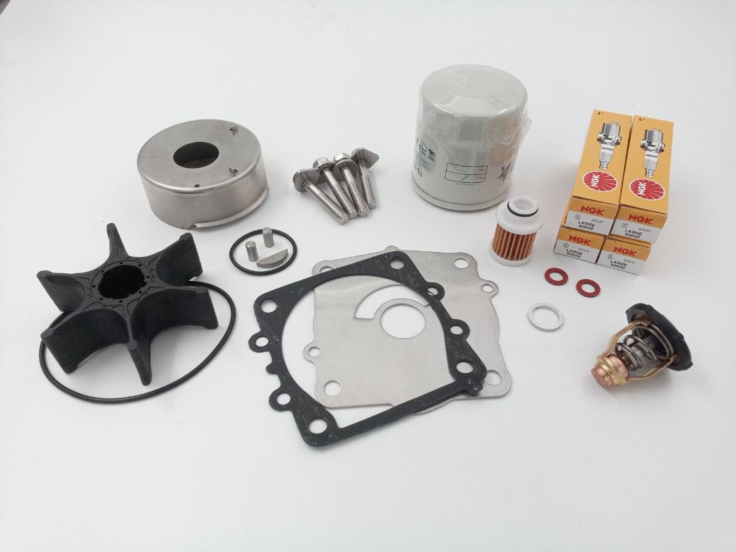 Comprehensive Yamaha Outboard Motor Service Kit containing all the essential items you need for a 100-hour or annual outboard motor service.